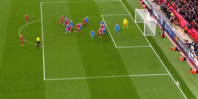 萨拉赫处理禁区外的直接任意球,一脚贴地箭击中罗伯逊,打了奥布拉克一个措手不及,1-0!