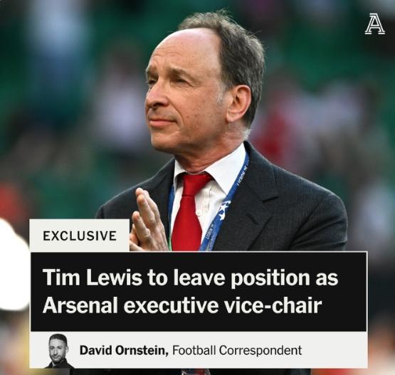 9月19日讯 The Athletic报道,阿森纳执行副主席蒂姆-刘易斯将离任,这标志着俱乐部董事会将迎来重大改组。