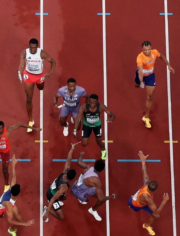 4x400米接力预赛第一组,美国和肯尼亚两队都受到赞比亚队选手的影响,两队将通过重赛争夺一个决赛席位。但目前晋级决赛的八支队伍仍然保留晋级资格,美国和肯尼亚之间的胜者会成为第九支决赛队伍。