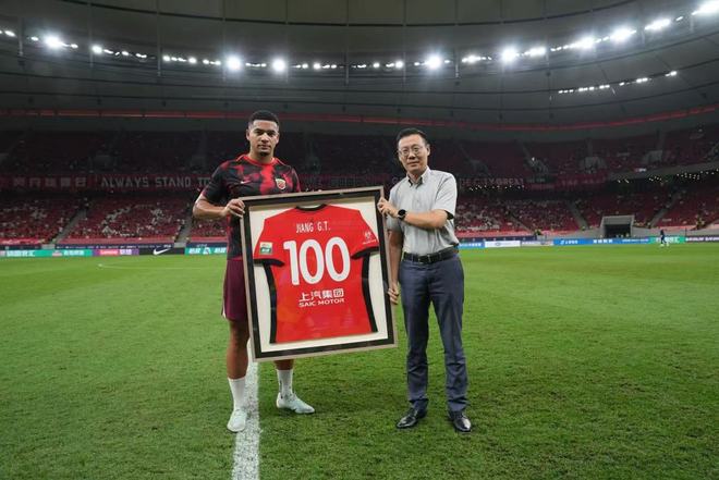 赛前,海港俱乐部为蒋光太举行了出战百场纪念仪式。
