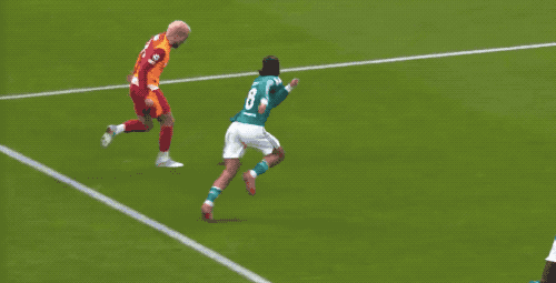 第14分钟,伊尔马兹突入禁区,索博斯洛伊先是用左手击中伊尔马兹的面部,接着右手又打在对方的脸上,裁判果断判罚点球。