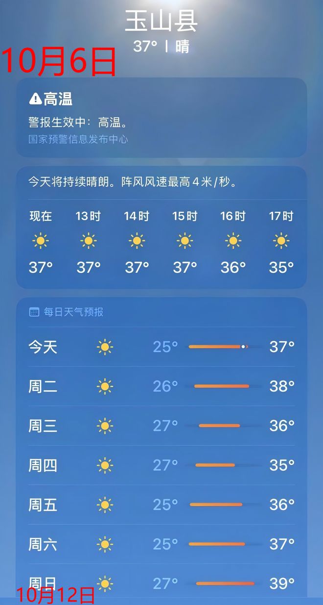 但它依然不是在江西最热的县,铅山县可能马上要冲破40度了。