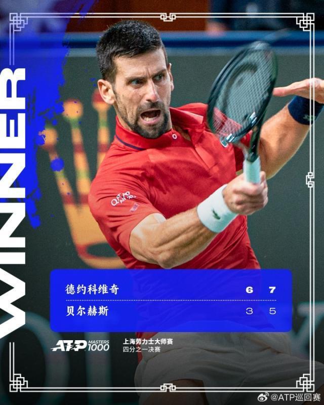 第80次进大师赛男单4强!38岁德约2比0贝尔赫斯 晋级上海大师赛4强