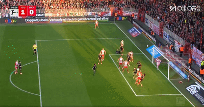第9分钟,柏林联合前场左侧开出角球,前点后点两次头球接力之后,安萨门前头球破门。随后VAR介入,判罚安萨体毛级越位在先,进球无效。