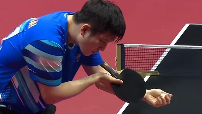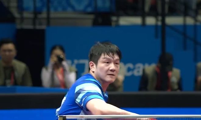 第二局比赛,樊振东在3比3之后发力,连得5分奠定了赢球基调,最终11比6轻松拿下第二局。第三局比赛,樊振东又是在打到3比3的时候发力,取得9比4领先。周雨顽强地追到了8比10。樊振东叫了暂停。暂停回来,樊振东拿下这一分,从而10比8赢下第三局。