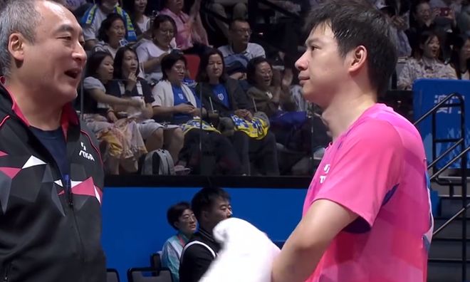 第四局一上来,樊振东连得3分。周雨叫了暂停,在暂停的时候,周雨跟教练表示:“真不好打。”教练安慰他要狠一点,放开了打,输了就输了。周雨最后嘟囔了一句:“想赢一局。”央视解说员高菡笑着表示:“可能周雨赛前给自己定下的目标是赢一局。现在他要狠一点,多一点搏杀。”