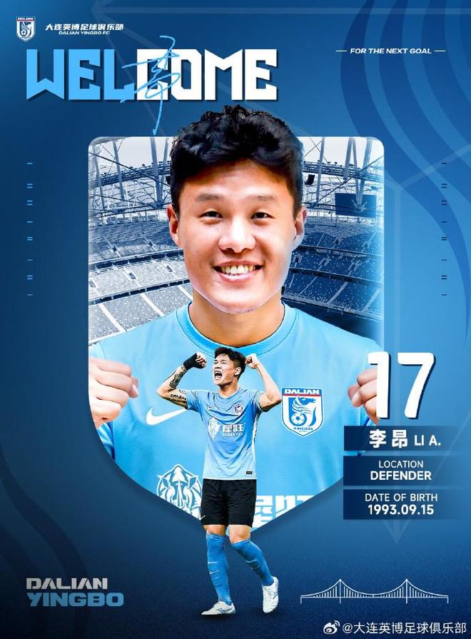- 中超 | 官方:大连英博签下原上海海港后卫李昂